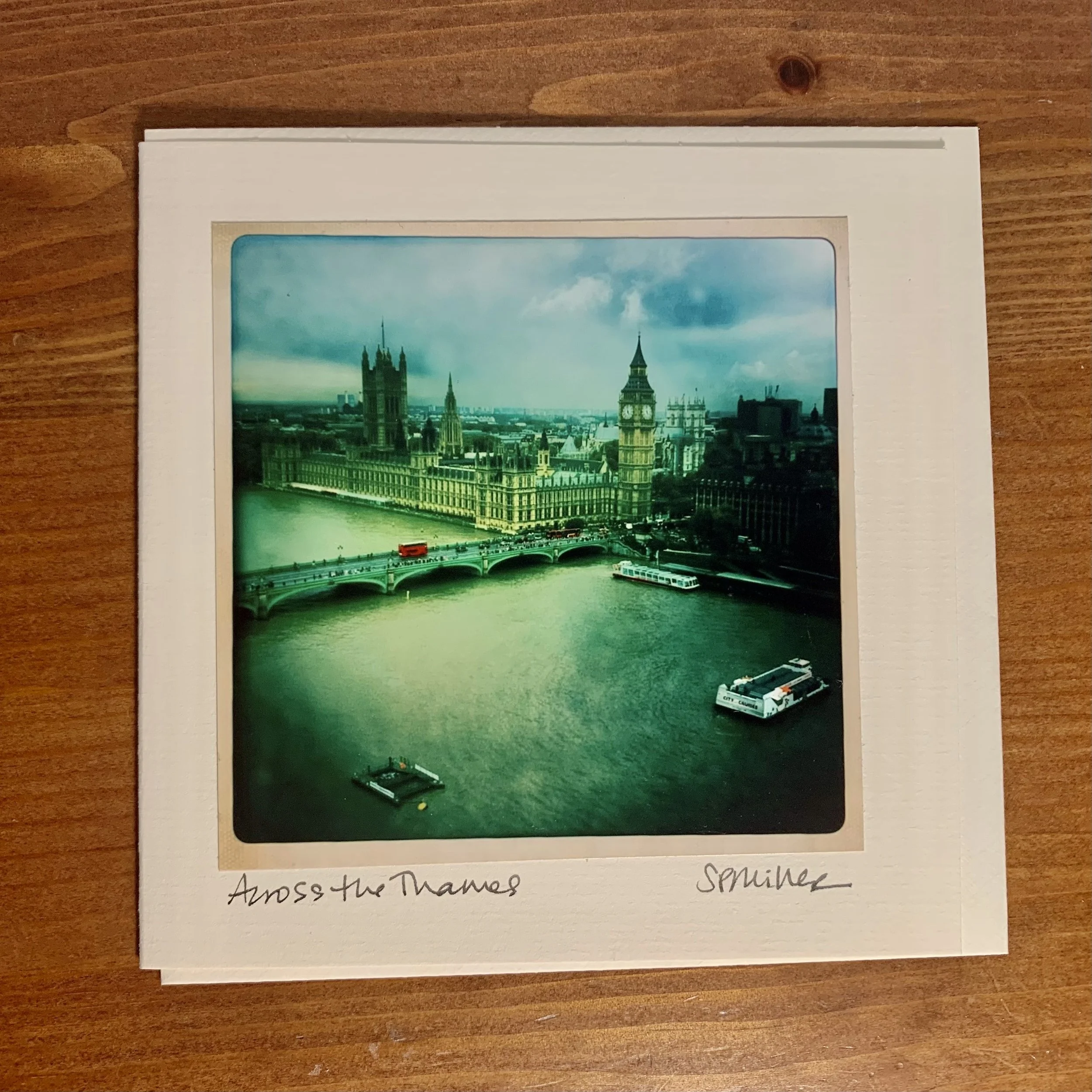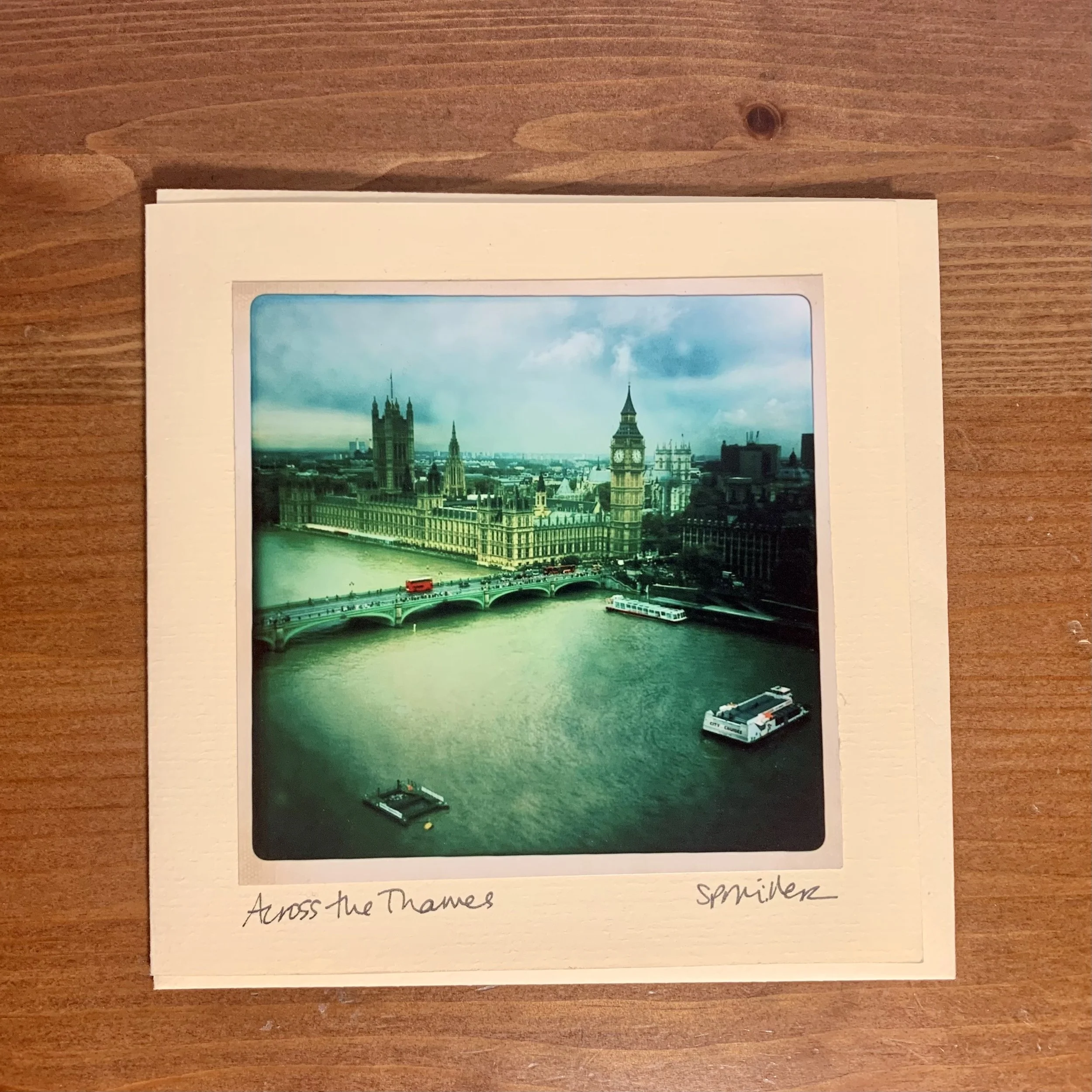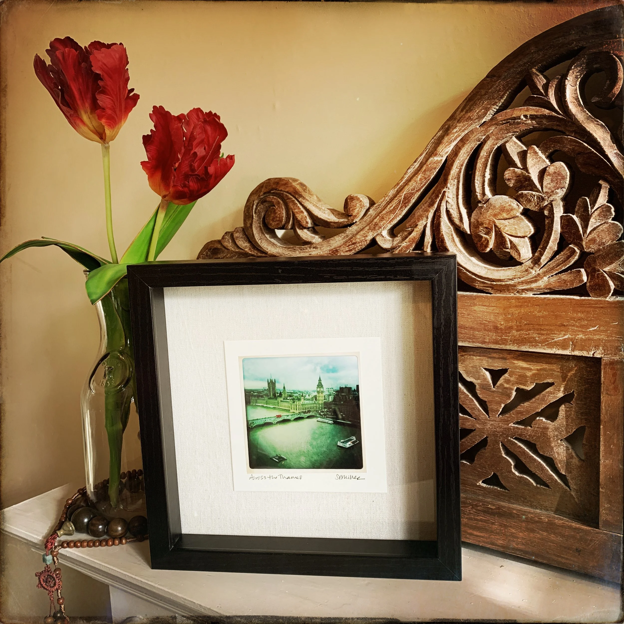 When a card becomes a keepsake! The hand titled and signed cards mimic mats/mounts for the photos when framed. Across the Thames, ivory card displayed in a 9" x 9" Belmont shadow box frame by Studio Decor (similar to IKEA HOVSTA 9" x9"; IKEA's SANNAHED 9.75" x 9.75"/19.75" x 19.75" could also work! This is for display purposes only - frames are not available for purchase on lucybugdesigns.com)