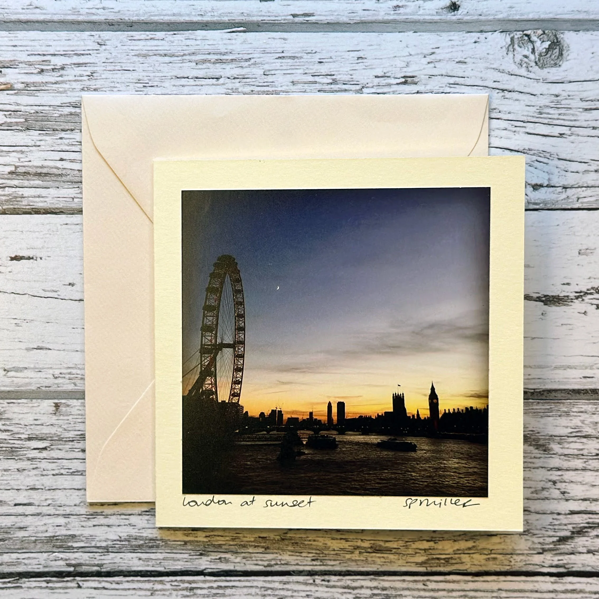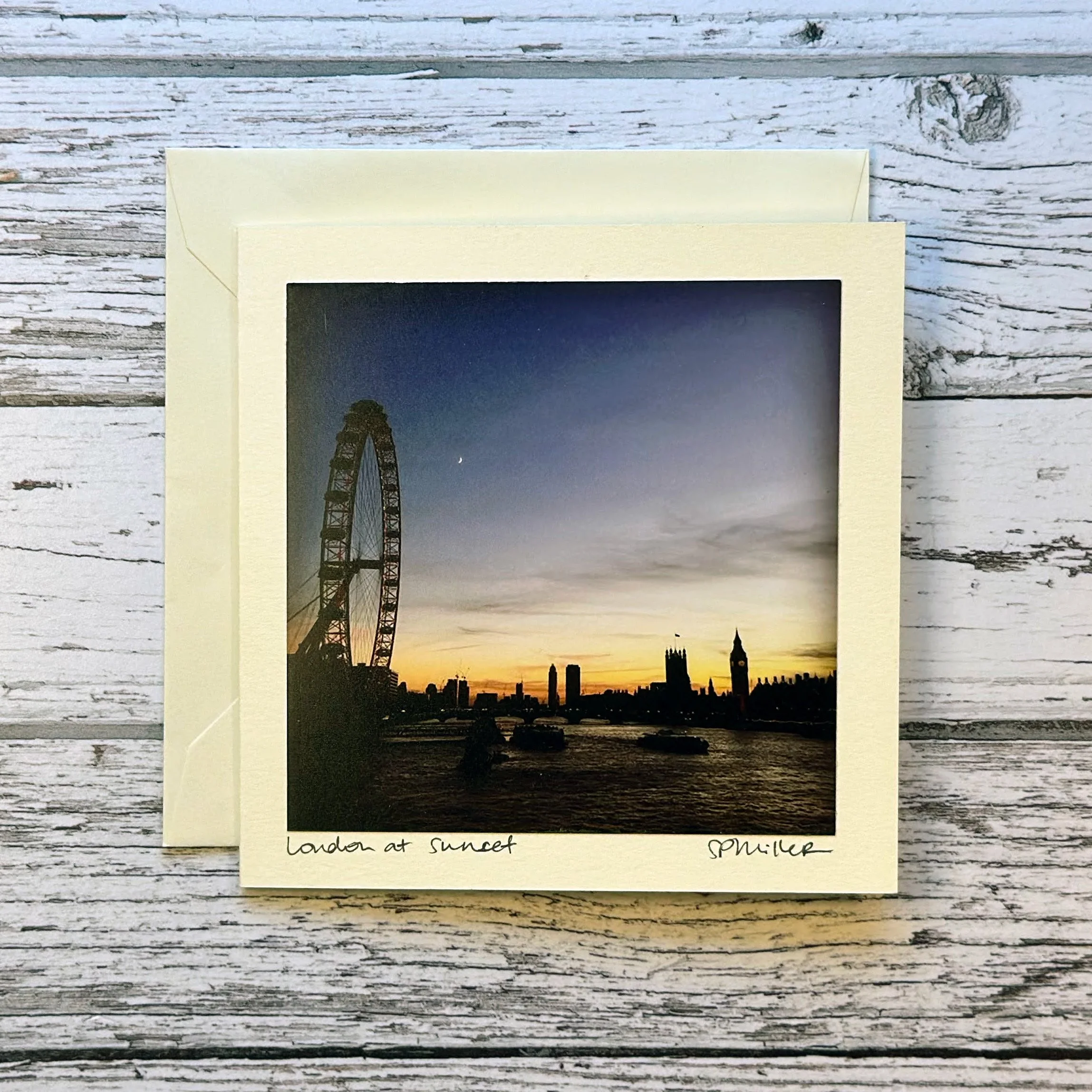 When a card becomes a keepsake! The hand titled and signed cards mimic mats/mounts for the photos when framed. London at Sunset ivory card displayed in a 9" x 9" Belmont shadow box frame by Studio Decor (similar to IKEA HOVSTA 9" x9"; IKEA's SANNAHED 9.75" x 9.75"/19.75" x 19.75" could also work! This is for display purposes only - frames are not available for purchase on lucybugdesigns.com)