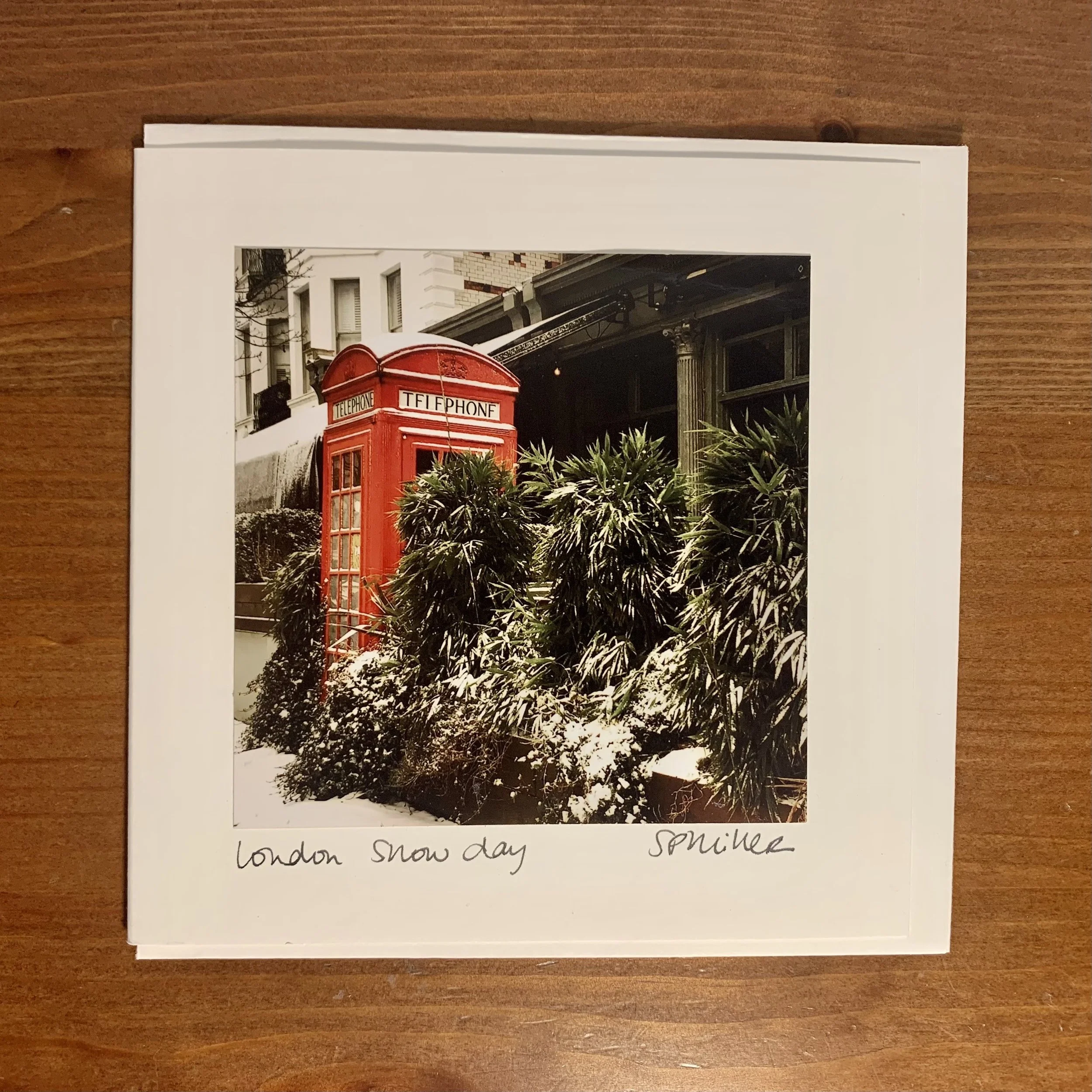 When a card becomes a keepsake! The hand titled and signed cards mimic mats/mounts for the photos when framed. London Snow Day, white card/envelope - displayed in 9" x 9" Belmont shadow box frame by Studio Decor (similar to IKEA HOVSTA 9" x9"; IKEA's SANNAHED 9.75" x 9.75"/19.75" x 19.75" could also work! This is for display purposes only; frames are not available for purchase on lucybugdesigns.com.)