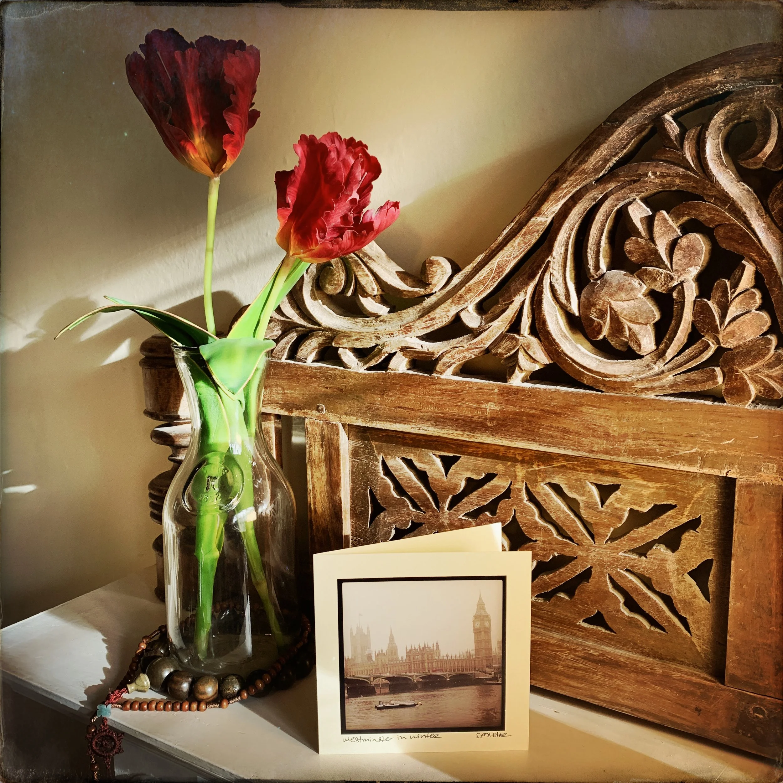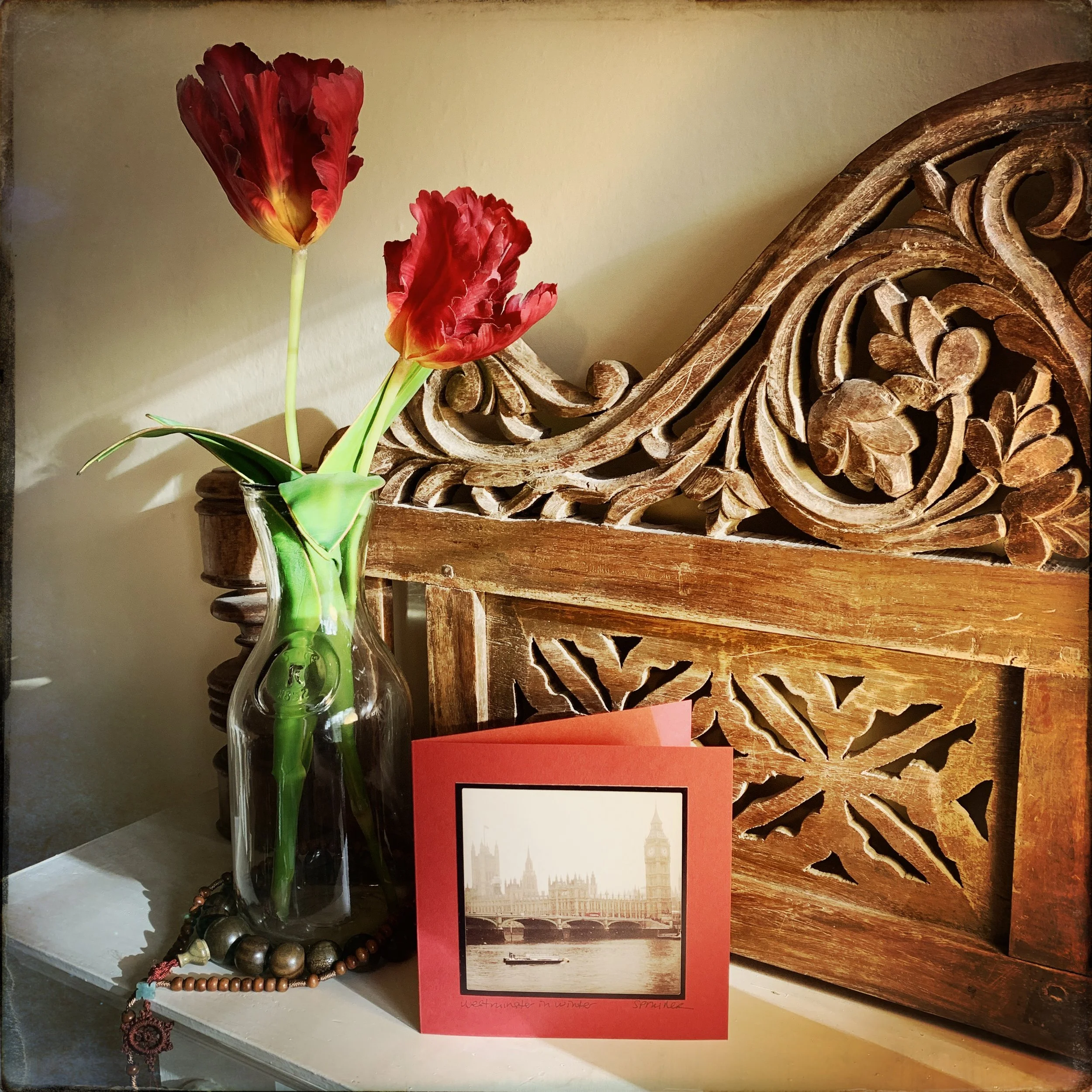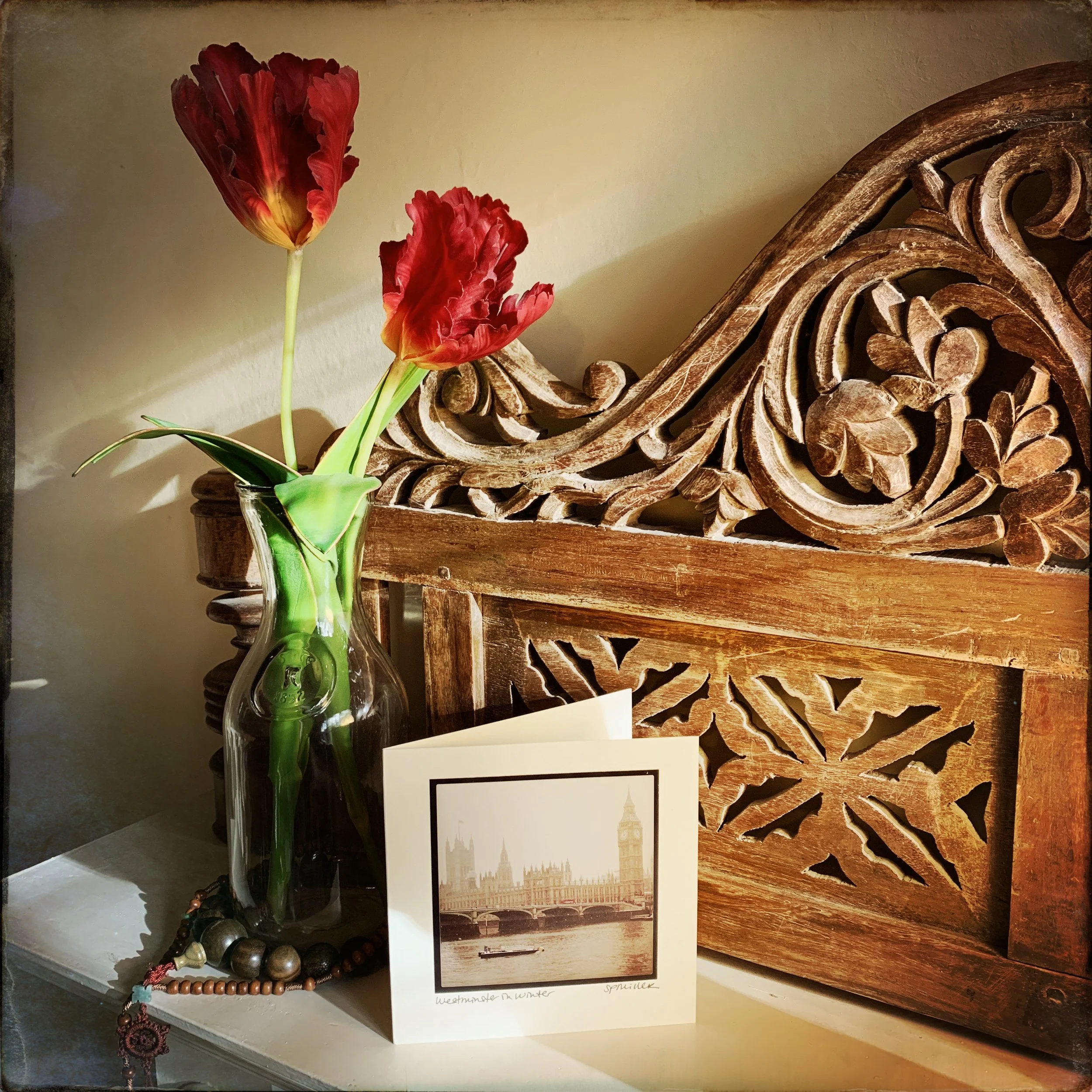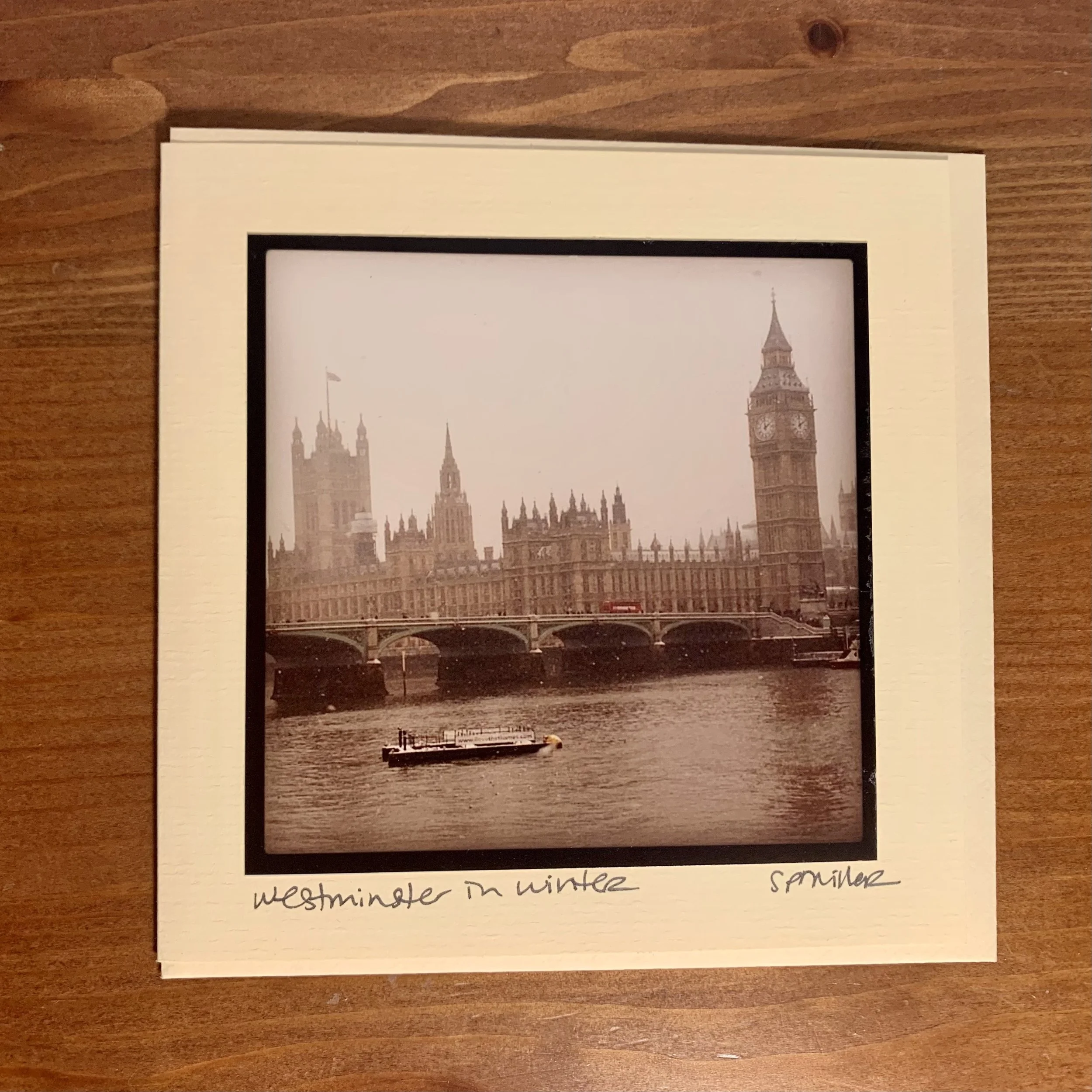 When a card becomes a keepsake! The hand titled and signed cards mimic mats/mounts for the photos when framed. Westminster in Winter, ivory card displayed in 9" x 9" Belmont shadow box frame by Studio Decor (similar to IKEA HOVSTA 9" x9"; IKEA's SANNAHED 9.75" x 9.75"/19.75" x 19.75" could also work! This is for display purposes only - frames are not available for purchase on lucybugdesigns.com.)